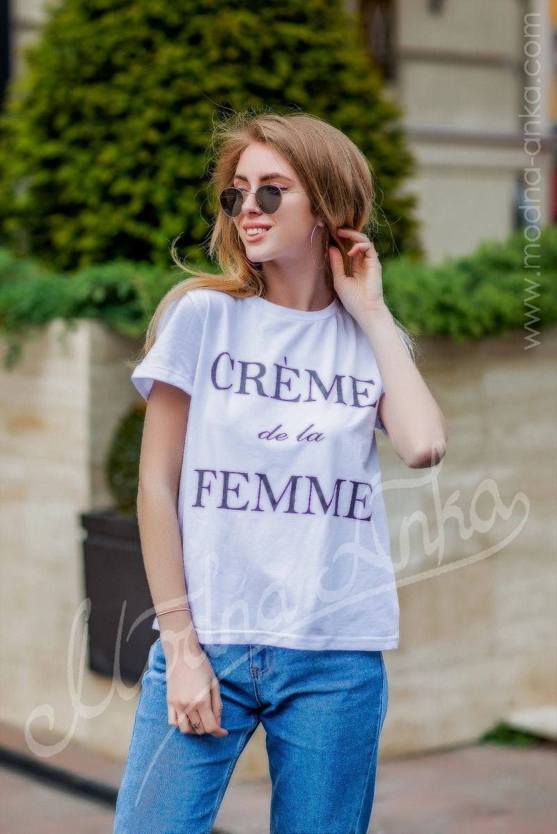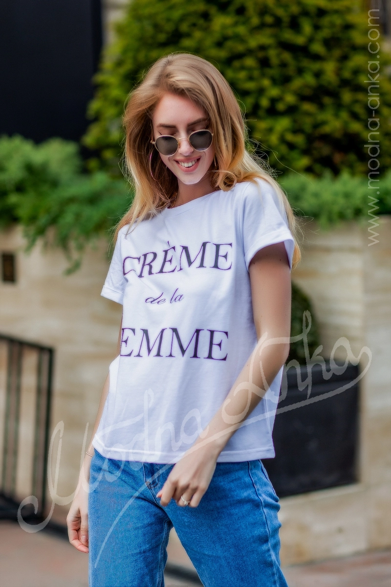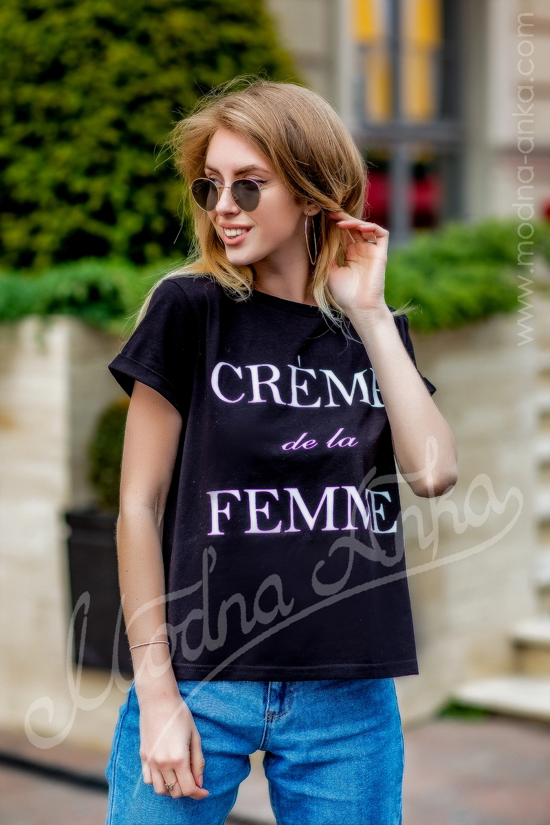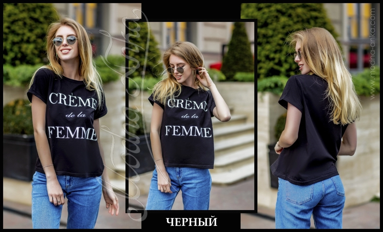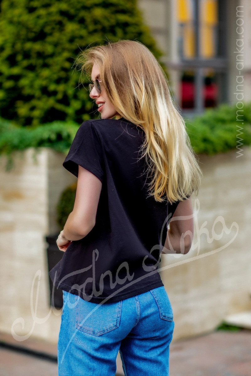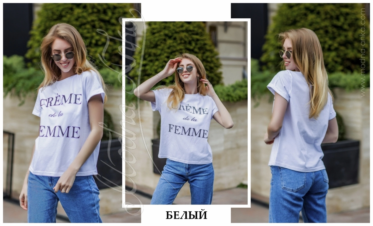 Футболка из хлопка с накатом спереди. Рукава с отворотом. Ткань