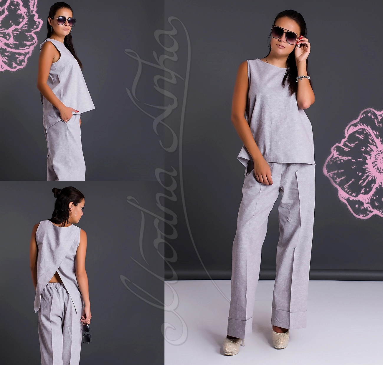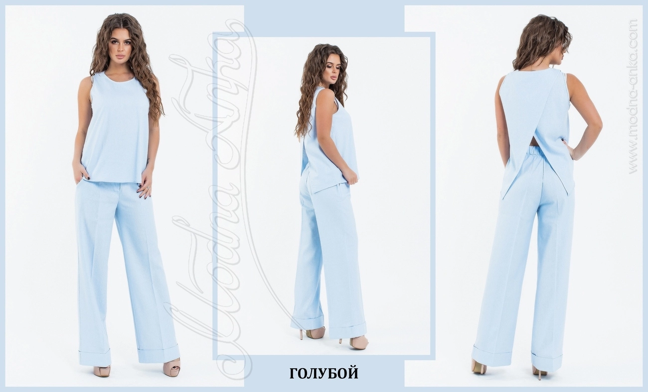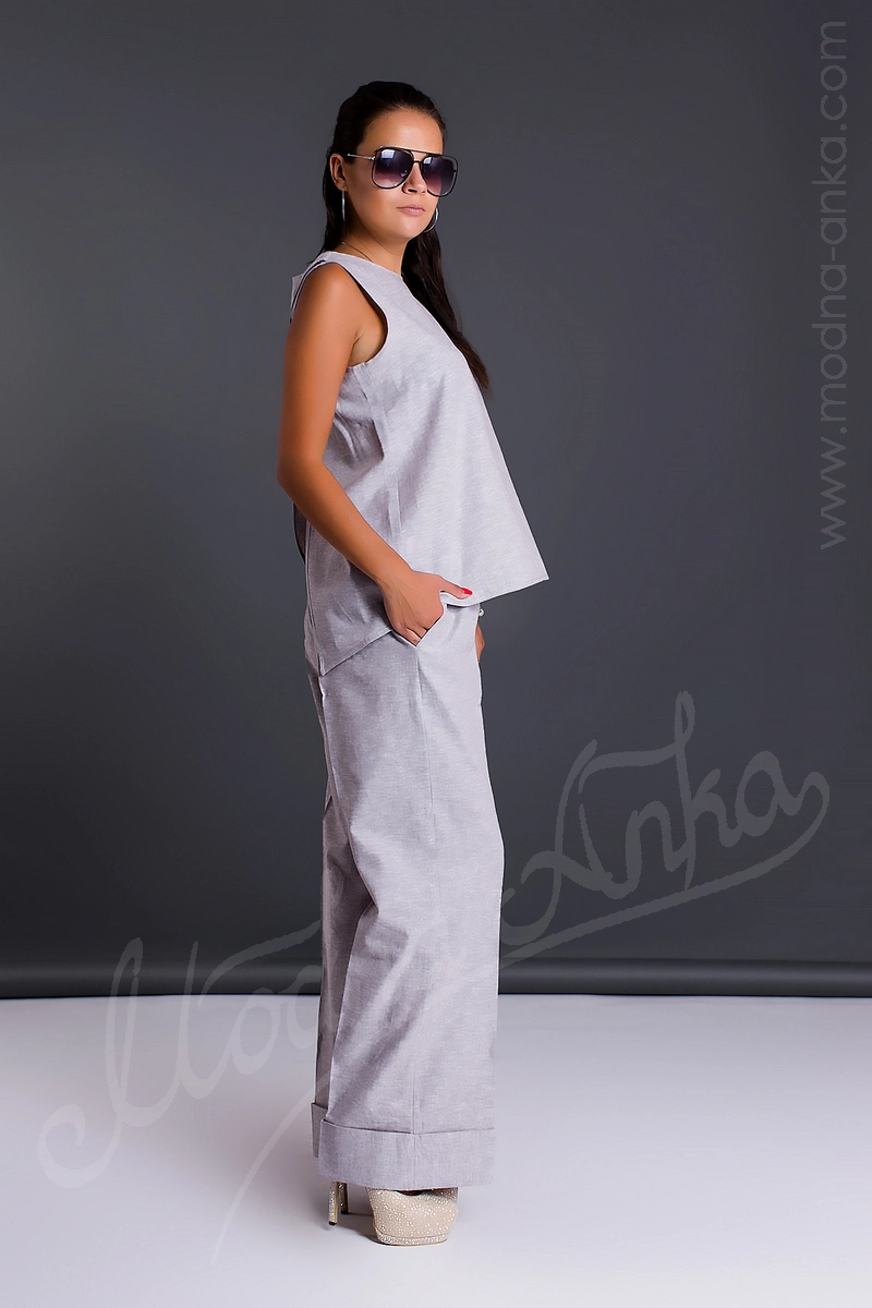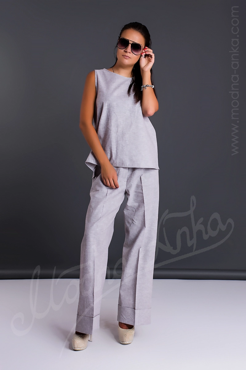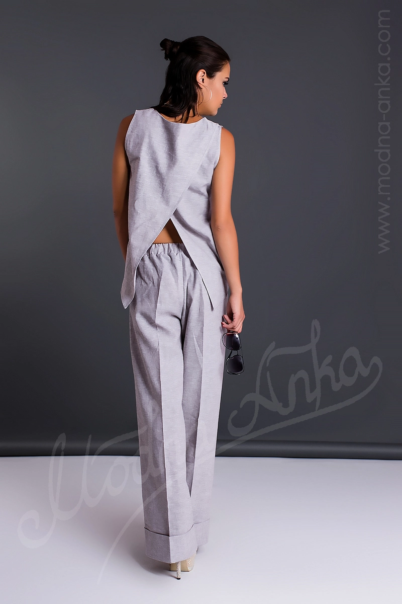 Костюм из натурального льна. Брюки на резинке. Спинка топа на