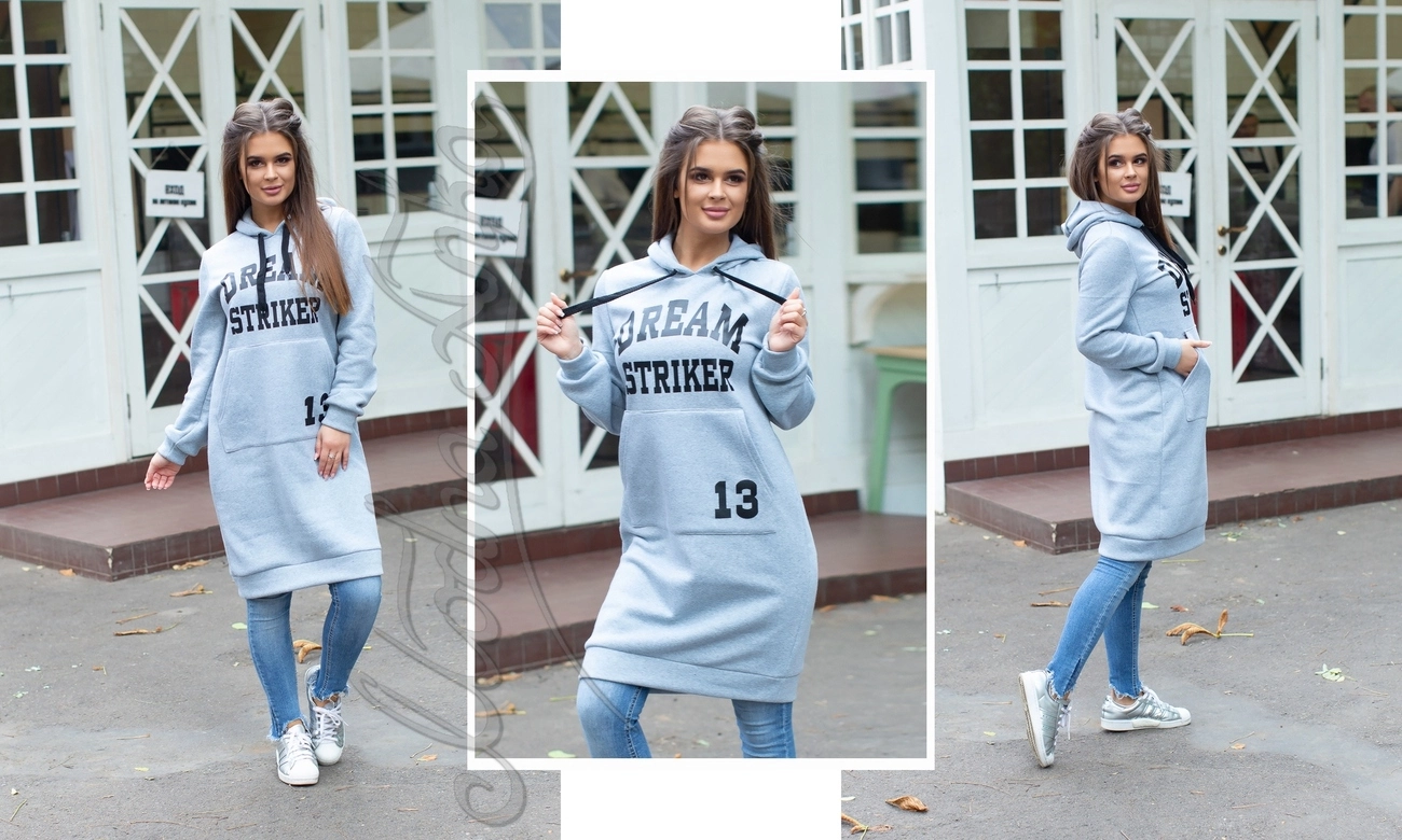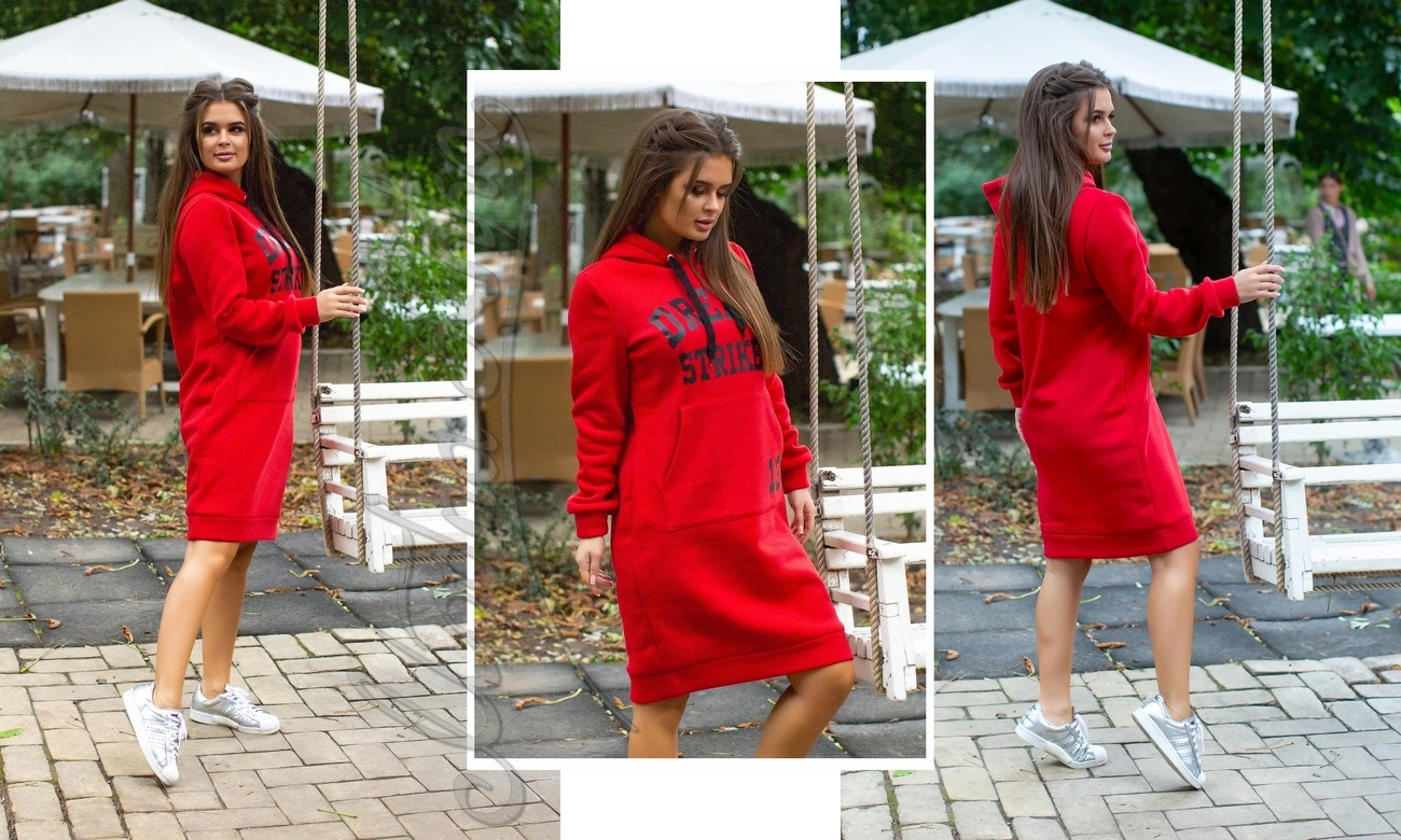 Описание: Платье из трехнити на флисе турецкого производства, теплая и очень приятная к телу. Качество супер! Есть капюшон с кулиской. На груди на кармане накатка.