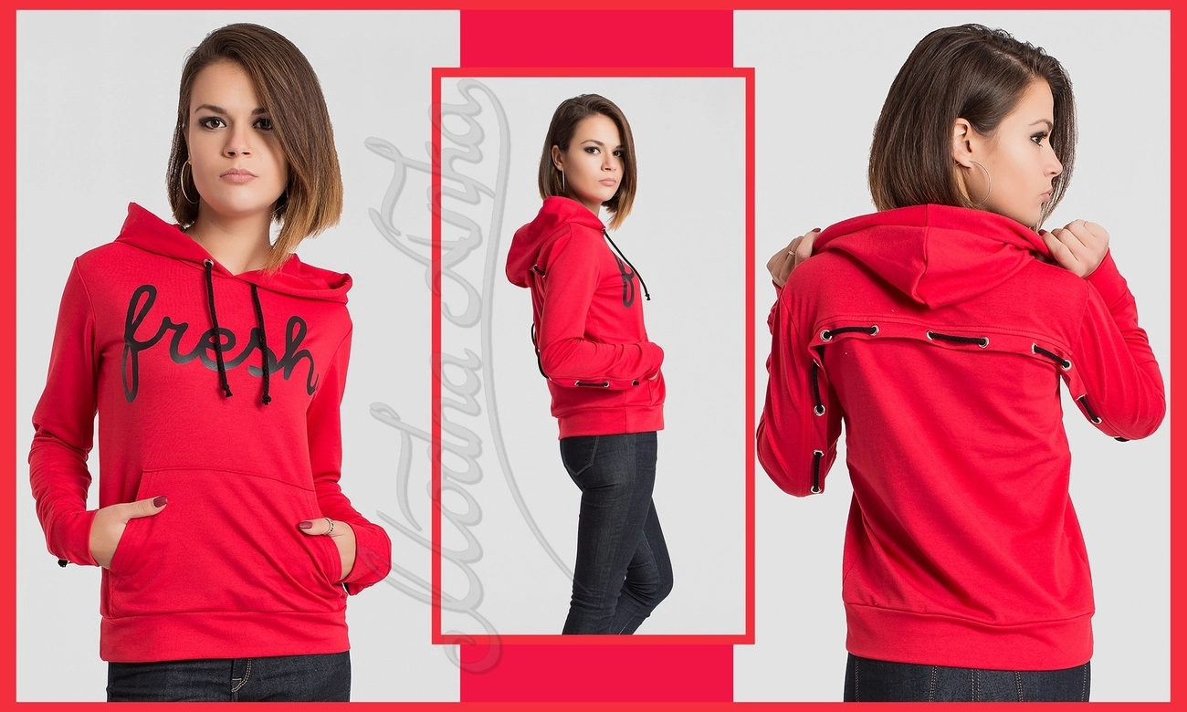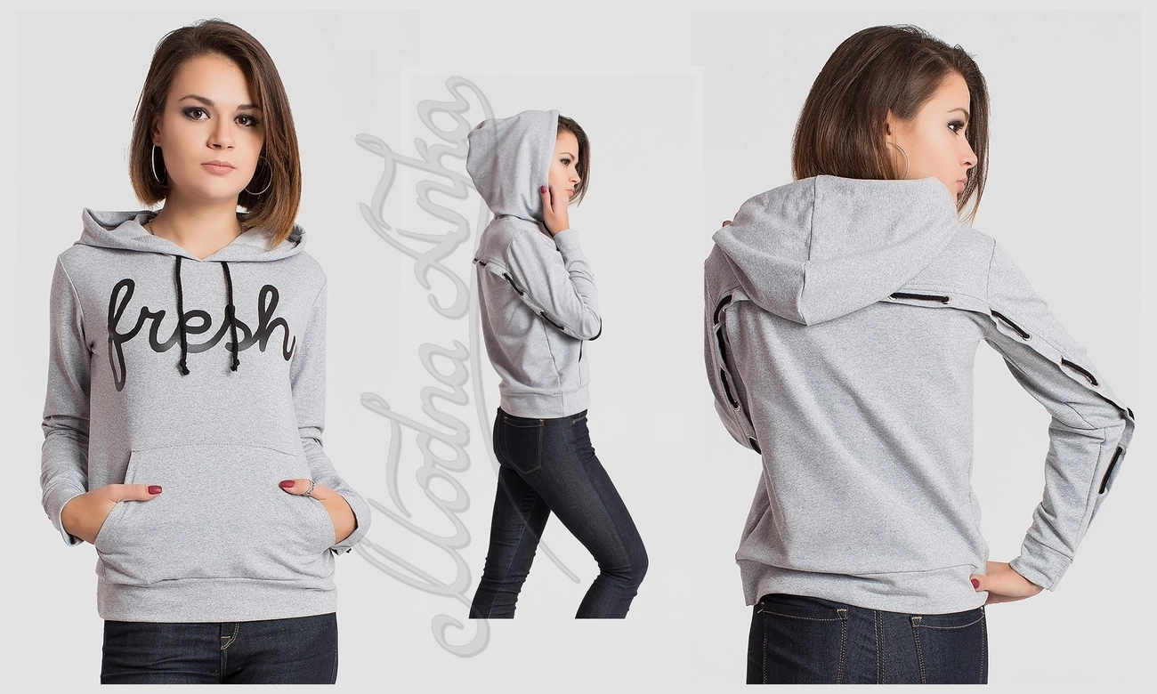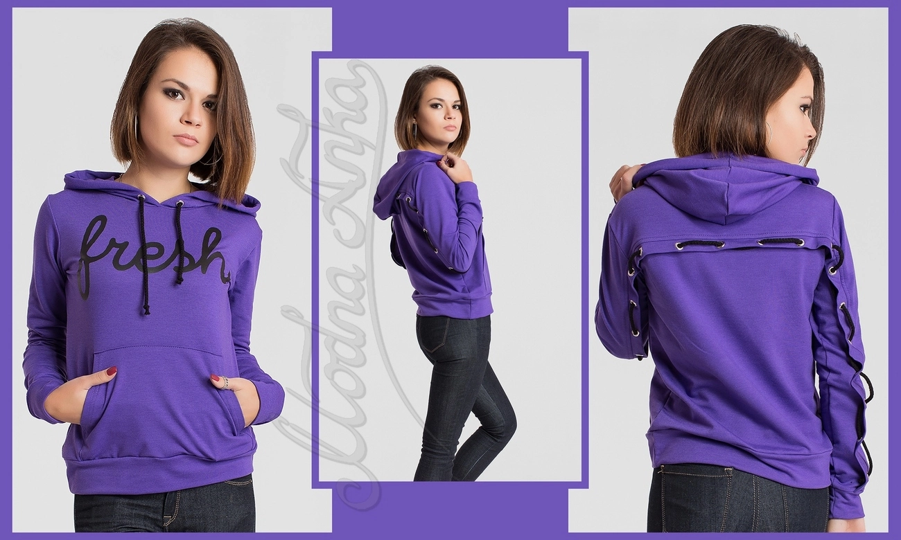 Капюшон с кулиской. На груди накатка. Сзади через рукава и спинку