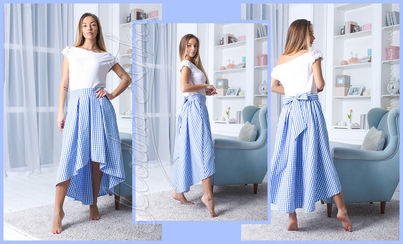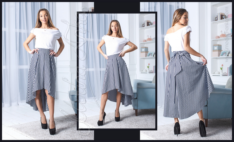 Пояс-завязка вшит в боковой шов. Пояс юбки сзади на резинке.
